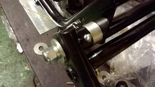 I have refurbished the front arms and repainted them with “POR15 Top coat” I made new spacers and end washers complete with O rings for the bearings and added new grease nipples, the shell bearings and bearing centre were retained