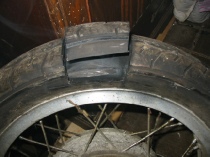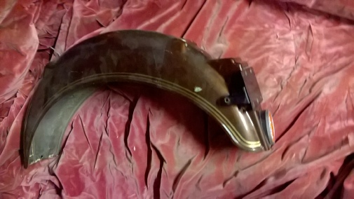 I was expecting fun removing the rear wheel itself, since I had not been able to raise the plot very high on my own and I had read many stories on how a high back wheel might help in removal on a standard machine. In my case however things were made worse by the all enveloping rear mudguard moulding and the solid tyre (without any air), fortunately lateral thinking occurred, and I took a disc cutter and removed a nice flap of the 40 year old flat rear tyre then it slipped past the brake shoes and allowed the whole wheel followed by the rear moulding to be removed (memo don’t go for a wide rear tyre on rebuild)