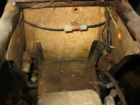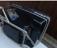 Getting the rear moulding off was a pain, first to be removed is the huge pannier frame (I was lucky enough to catch a set of period Krauser panniers and frame in very good condition at a local auction and have high hopes of fitting them. The Right hand bolt that held the RH frame and the rear unit would not undo, its nut was tucked between the frame and rear mudguard moulding and it resisted all attempts to stop it turning. Finally I removed the battery box and bolts and could slide the moulding forward and spring it enough the get to the narrow flanged nut from above, continuing the unequal corrosion pattern the LH one just undid. The footrests held the bottom of the frame and true to form the RH footrest undid smoothly, while the LH needed a good heating before it moved. The footrests themselves were very crude just 8mm rod threaded then bent backwards and welded along the foot part to form a sort of rectangular peg for the rubbers.